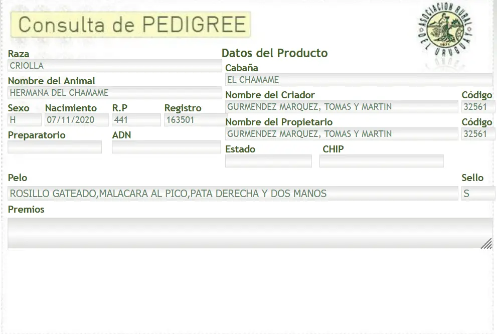 Hermana trägt bereits ein Fohlen aus der Verpaarung mit dem hochprämierten Zuchthengst Colibrí Matrero [Youtube] [Facebook] [Instagram] in sich. Dessen Abstammung – Vater Del Oeste Acierto, Mutter Colibrí Matrera – ist in der Criollo-Zucht hochgeschätzt. Besonders die Nachkommen von Del Oeste Acierto überzeugen durch Leistungsbereitschaft und ausgezeichnete Zuchtmerkmale. Die Anpaarung vereint somit zwei Linien, die sich in ihren Stärken sinnvoll ergänzen – eine Konstellation, die züchterisch mit Bedacht gewählt wurde.